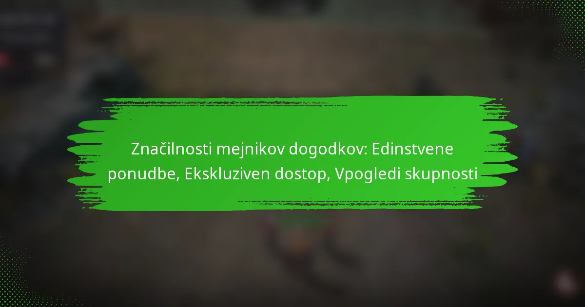 Prioritizacija funkcij mejnikov dogodkov vključuje osredotočanje na edinstvene ponudbe, ekskluziven dostop in vpoglede skupnosti. Ti elementi izboljšujejo uporabniško izkušnjo in angažiranost, kar na koncu vpliva na uspeh dogodka.