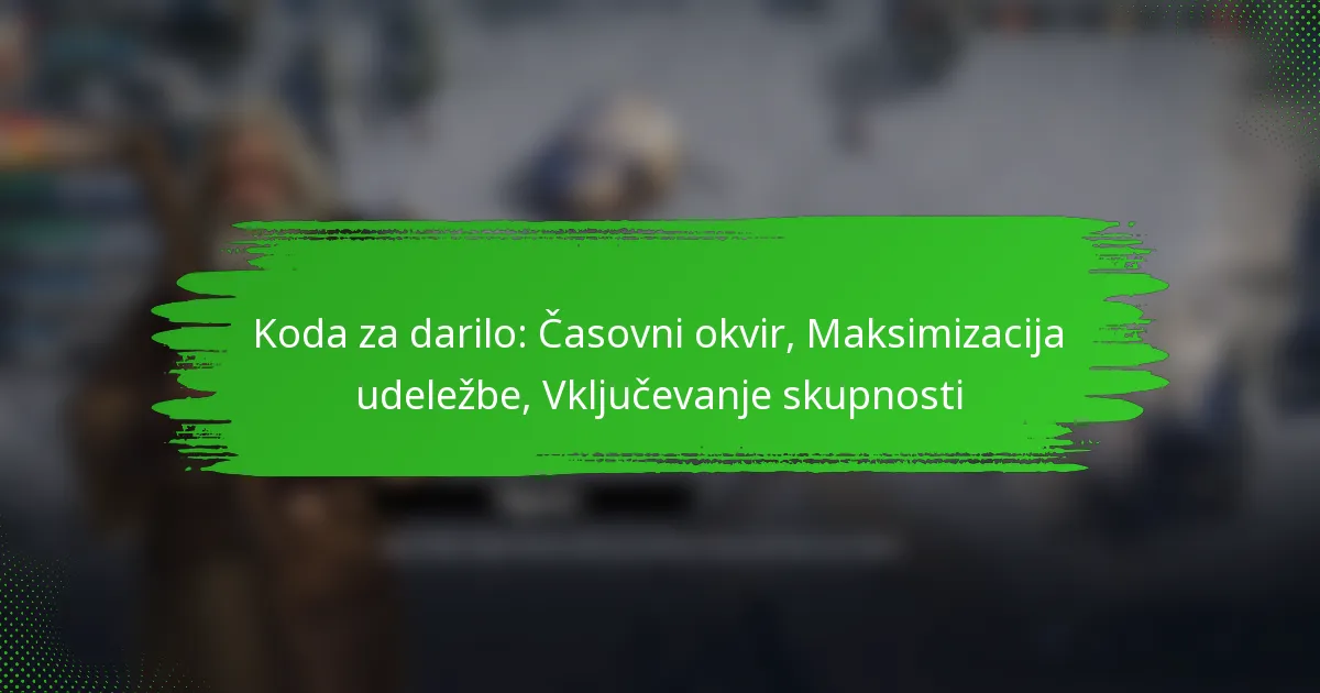Za maksimiranje udeležbe v dogodkih z darilnimi kodami se osredotočite na angažirajoče strategije, optimalen čas in učinkovito sodelovanje v skupnosti. Z izvajanjem teh taktik lahko povečate vidnost in spodbudite več udeležencev, da se pridružijo dogodku.